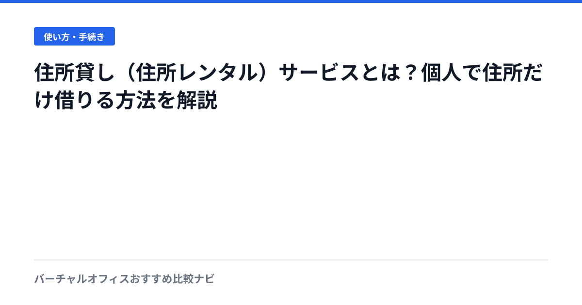 住所貸し・住所レンタルサービスの仕組みと選び方を解説。個人で住所だけ借りる方法、バーチャルオフィスとの違い、おすすめサービスを紹介。