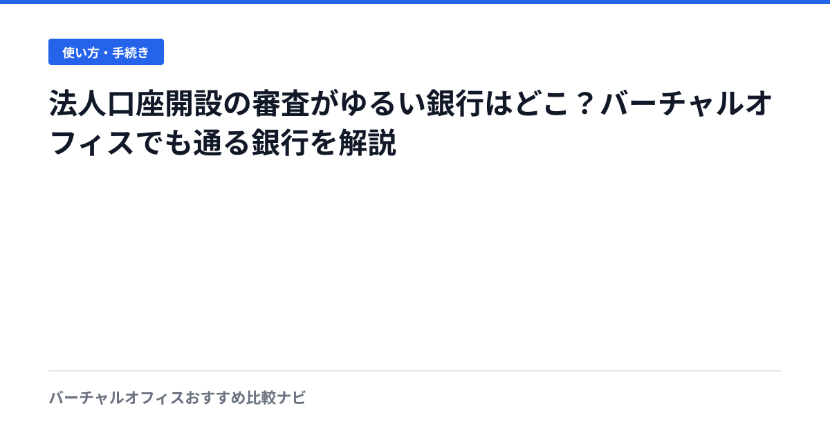 法人口座開設の審査がゆるい・通りやすい銀行を解説。バーチャルオフィスの住所でも審査に通った実体験をもとに、おすすめの銀行と審査のコツを紹介する。