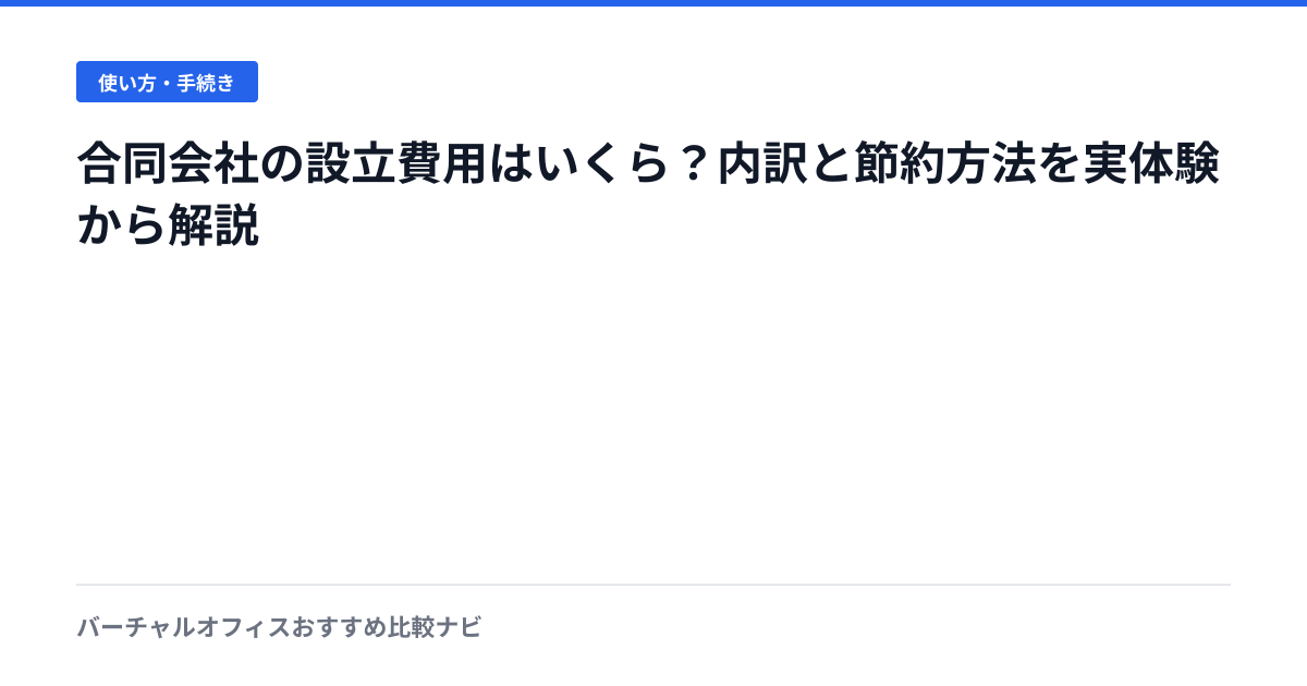 合同会社の設立費用を内訳つきで解説。登録免許税6万円+電子定款で最安6万円から設立可能。バーチャルオフィスを使った固定費の抑え方、実際に合同会社を設立した筆者の体験も紹介する。
