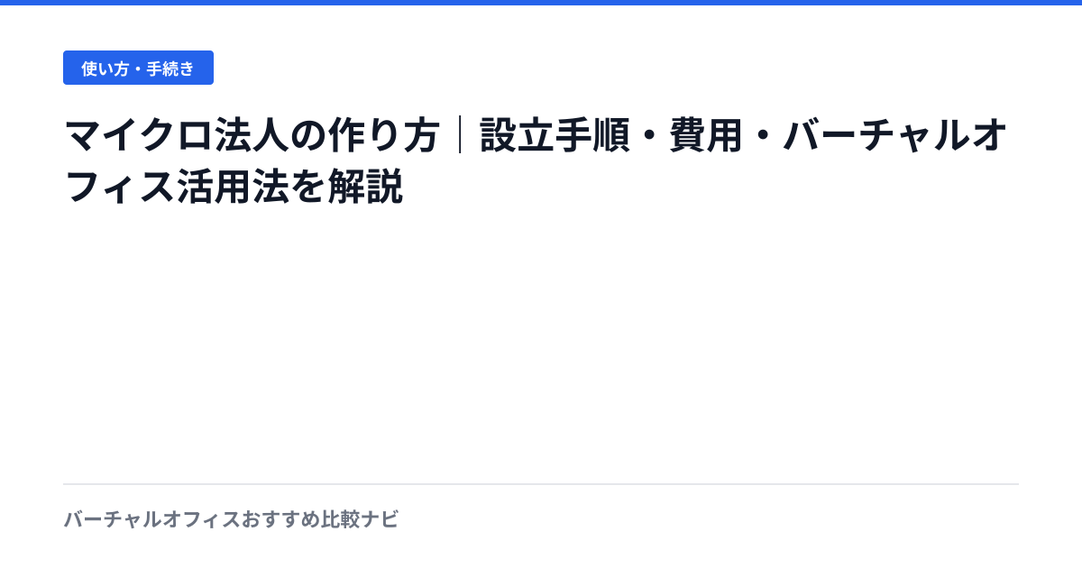 マイクロ法人の作り方|設立手順・費用・バーチャルオフィス活用法を解説