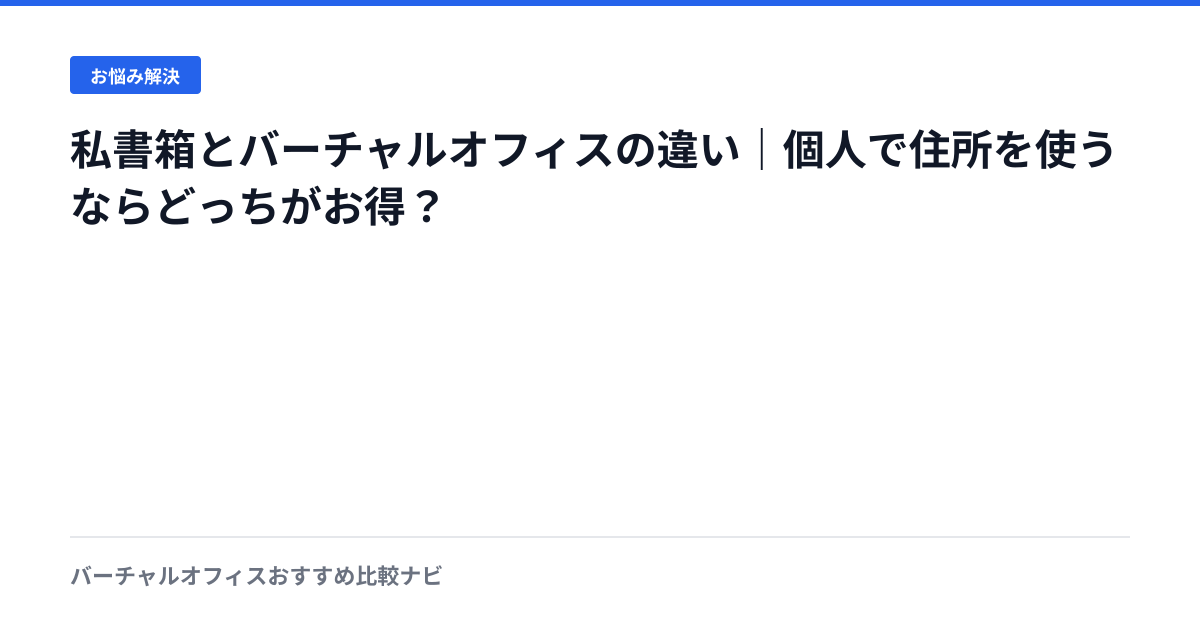 私書箱(郵便私書箱・私設私書箱)とバーチャルオフィスの違いを比較。個人利用・ネットショップ・法人登記など用途別におすすめを解説。