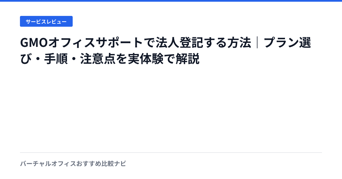 GMOオフィスサポートで法人登記するために必要なプラン・申し込み手順・注意点を実体験ベースで解説。銀行口座やクレカの開設体験、他社との法人登記コスト比較も紹介する。
