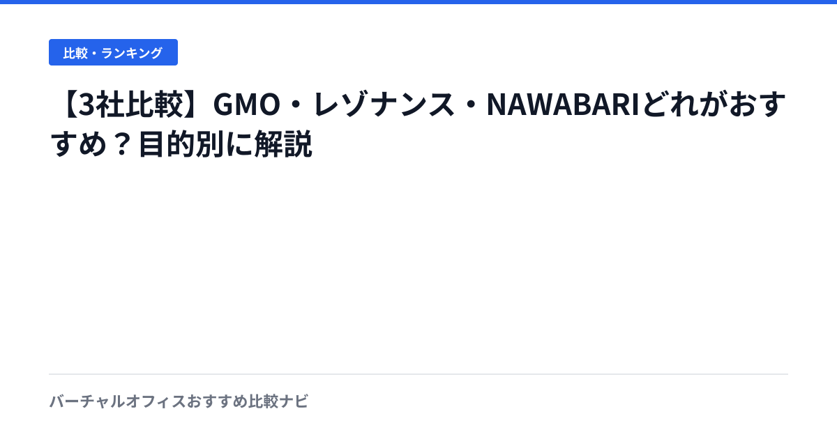 GMOオフィスサポート・レゾナンス・NAWABARIの人気3社を料金・サービス・用途で徹底比較。GMO利用者の実体験をもとに、目的別の最適な選び方を解説する。