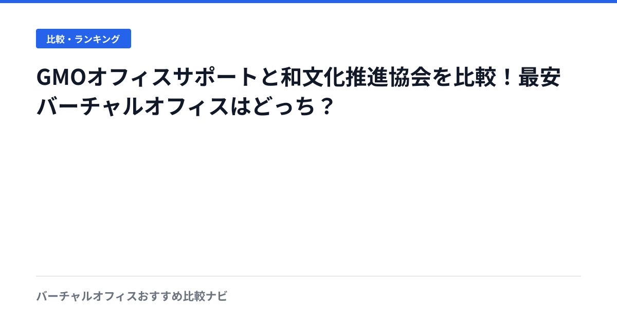 GMOオフィスサポートと和文化推進協会を料金・サービスで比較。月額660円vs500円の格安対決、法人登記・郵便転送の違いをGMO利用者が解説する。
