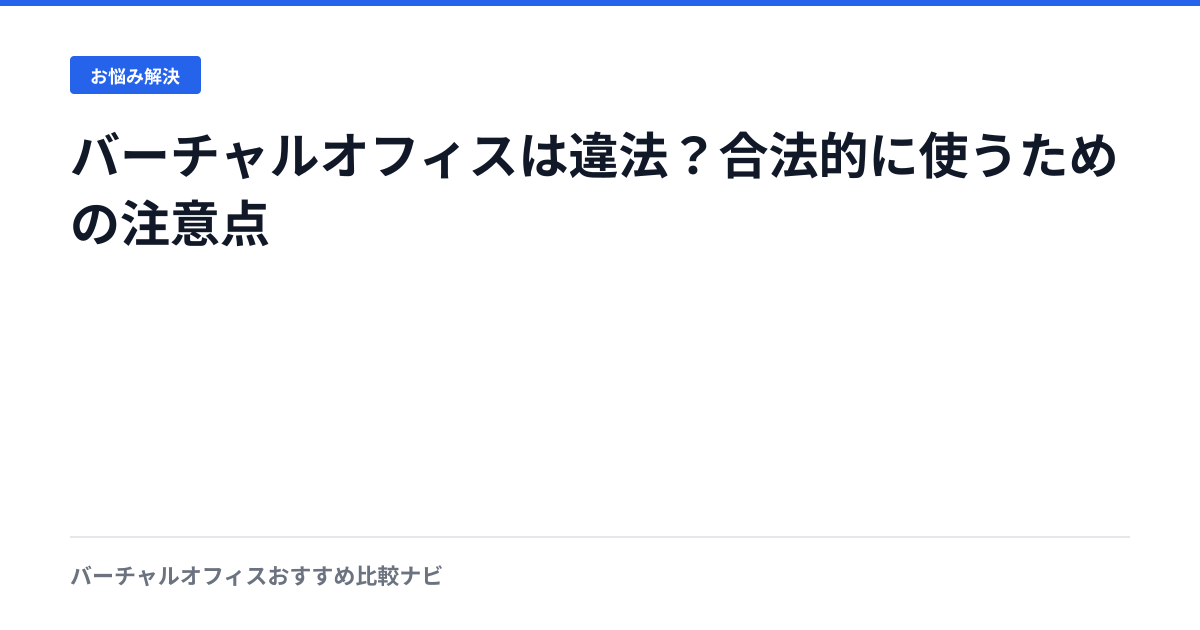 バーチャルオフィスの利用は違法なのか、関連する法律と合法的に使うための注意点を解説。実際にGMOオフィスサポートで法人登記・口座開設した筆者が、法的リスクを避けるポイントを紹介する。