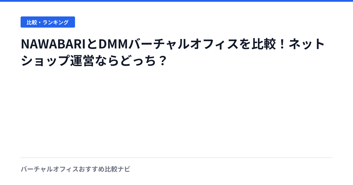 NAWABARIとDMMバーチャルオフィスを料金・サービスで比較。ネットショップ特化のNAWABARIと大手DMMの違いを解説し、用途別の選び方を提案する。