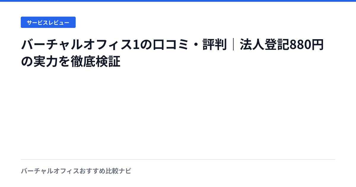 バーチャルオフィス1の口コミ・評判を徹底調査。法人登記880円・口座開設保証制度の実力と注意点を、GMO利用者の視点から正直に検証する。