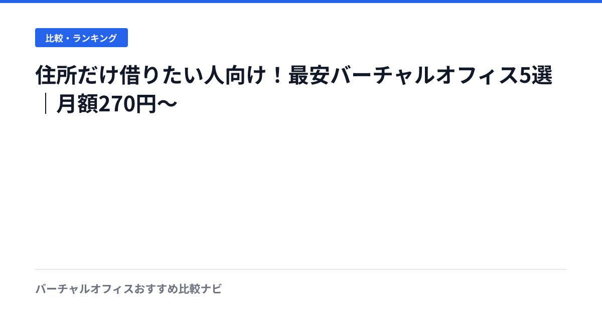 住所利用のみで安いバーチャルオフィスを5社厳選。法人登記不要・郵便転送不要なら月額270円から使える。最安プランの注意点も解説。