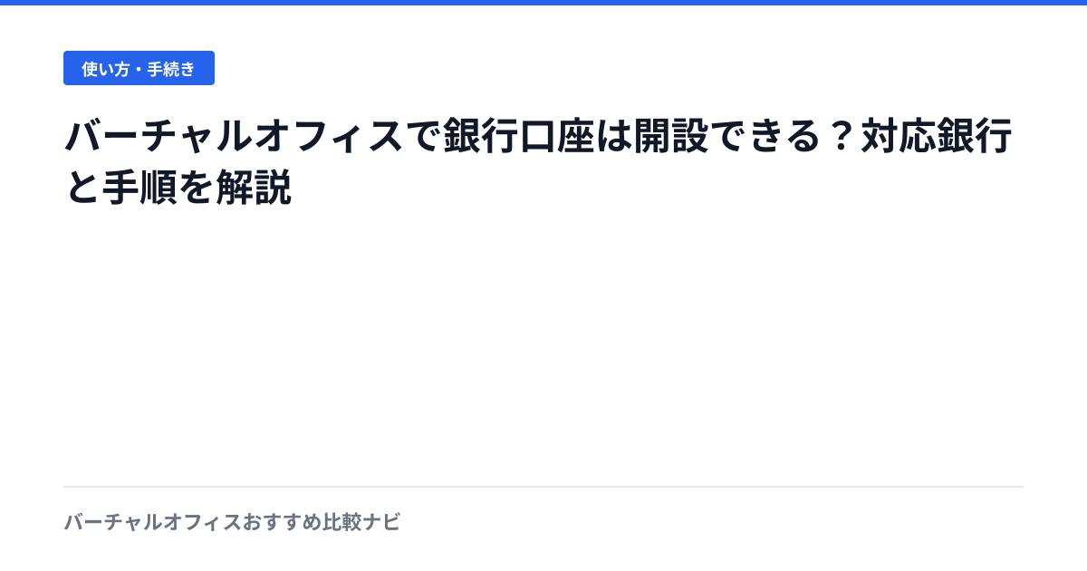 バーチャルオフィスの住所で法人口座は開設できるのか、対応銀行・手順・審査のコツを解説。GMOオフィスサポートの住所で実際に口座開設した筆者の体験談も紹介する。