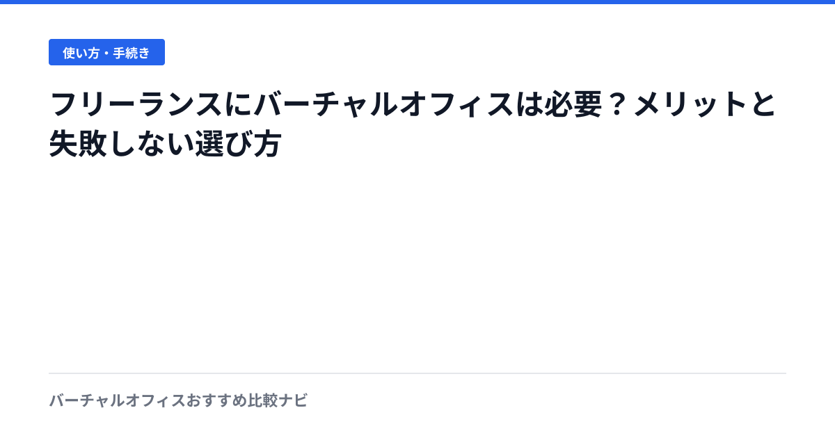 フリーランスにバーチャルオフィスは必要なのか、メリット・デメリットと選び方を解説。自宅住所を公開したくないフリーランスが知っておくべきポイントを体験ベースで紹介する。