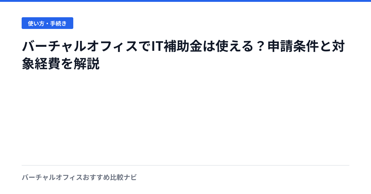バーチャルオフィス利用者がIT補助金を活用できるか解説。VO費用が補助対象になるか、申請時の住所要件、活用しやすい補助金制度をまとめます。