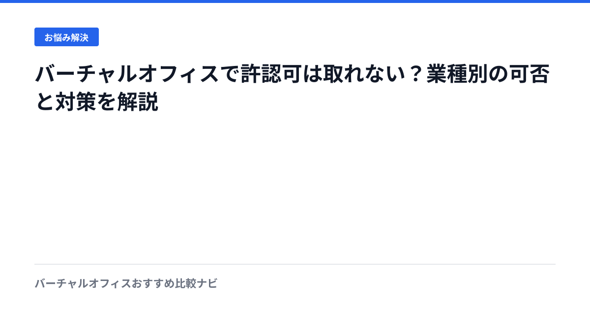 バーチャルオフィスで取れる許認可と取れない許認可を業種別に整理。建設業許可・古物商・人材派遣業などの可否と、許認可が必要な業種のVO活用法を解説する。