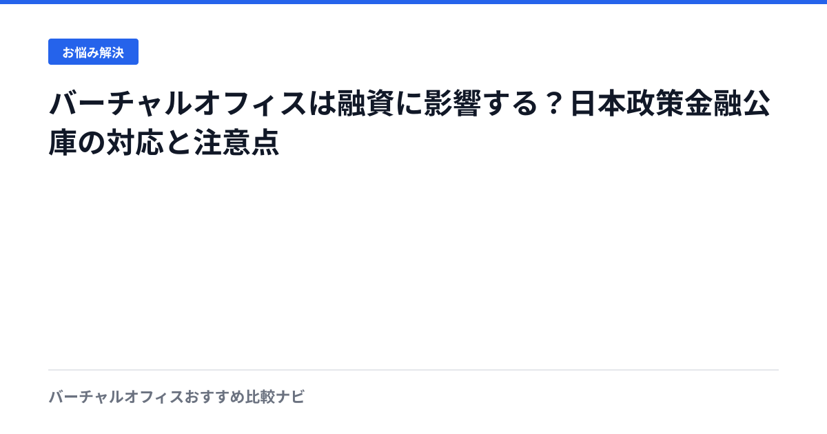 バーチャルオフィスの住所で融資は受けられるのか。日本政策金融公庫や銀行融資への影響、審査で不利にならないための対策をまとめた。