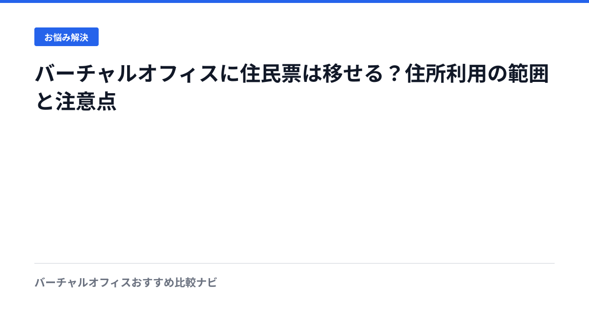 バーチャルオフィスに住民票を移せるか解説。住民票が移せない理由と、バーチャルオフィスの住所でできること・できないことを整理します。