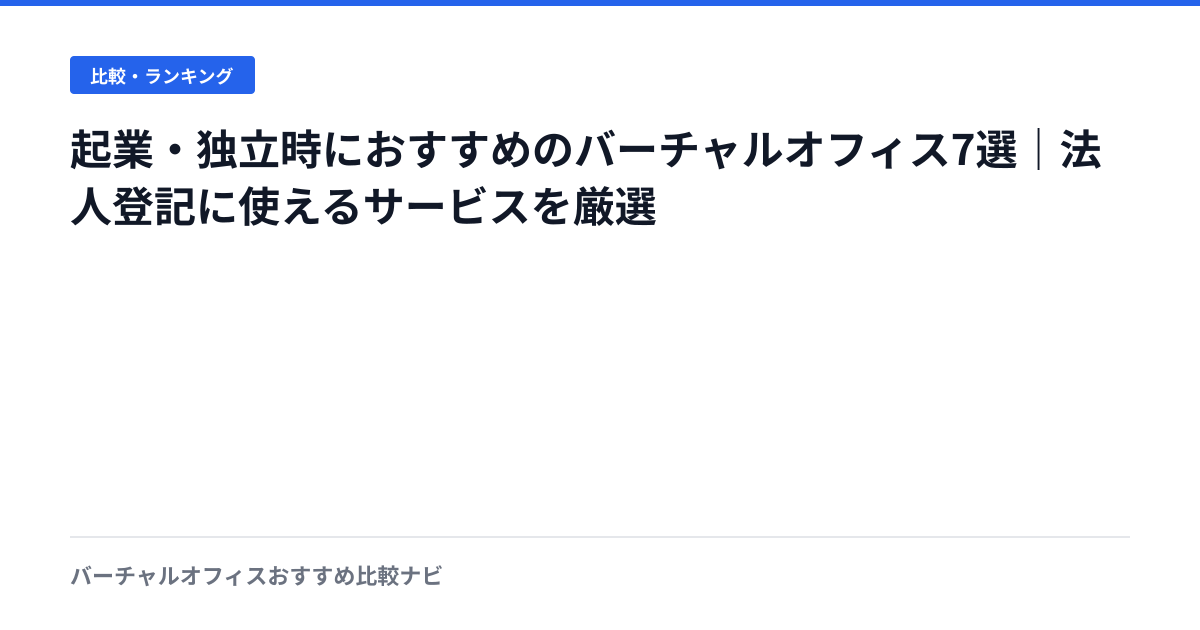 起業・独立を考えている人向けにバーチャルオフィスのおすすめ7社を紹介。法人登記・銀行口座開設の対応状況を比較し、実体験をもとに選び方のポイントを解説する。