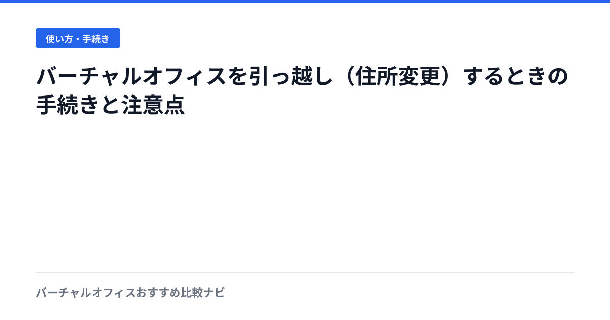 バーチャルオフィスの住所変更・乗り換え時に必要な手続きを解説。法人登記の変更費用、届出先一覧、引っ越しで失敗しない選び方のポイントを紹介します。
