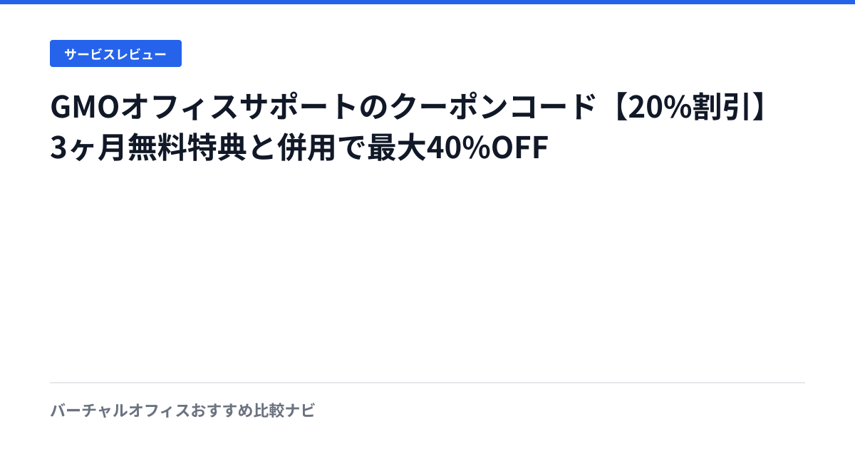 GMOオフィスサポートのクーポンコードを紹介。20%割引コードと3ヶ月無料特典の併用で初年度最大40%OFF。各プランの割引後料金を実際の申し込み画面で検証した。